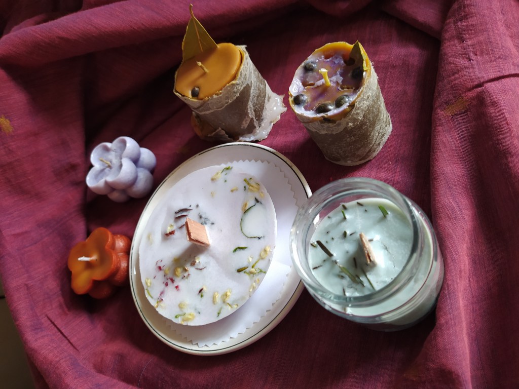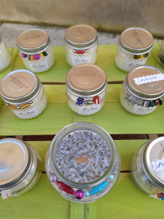 Le candele artigianali: cera d’api e soia biologica. Tutti prodotti usati sono naturali: i stoppini, colori e profumi.