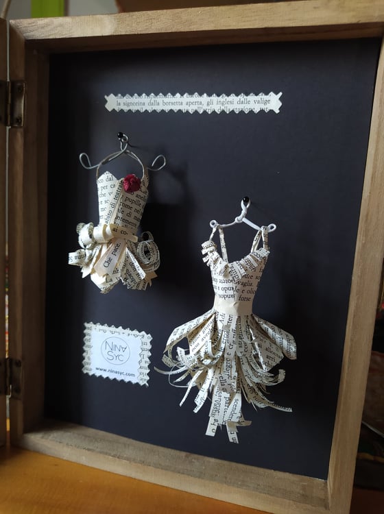 Clothes and bags: Every piece is made of the used fabrics, left overs, recycled pieces. When we shop, we buy materials from the Outlets and the second hand shops.
